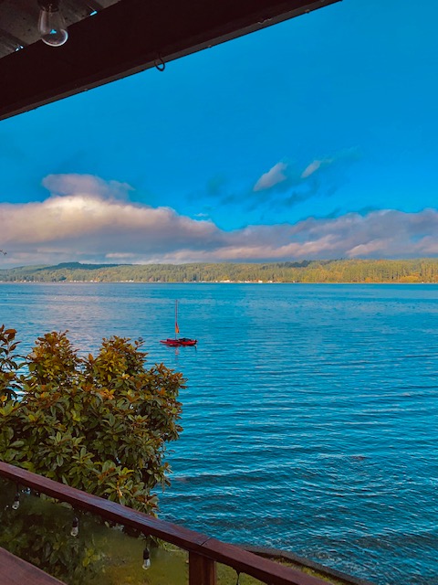 On the morning of my birthday, we woke up in her “beach house” on Hood Canal, which is not exactly what you’d think of as a beach house say here in Florida, mainly because the views are much different, however, equally as beautiful. Out from her deck is a giant oyster bed on the banks of the canal. If oysters are your jam, this is your heaven.