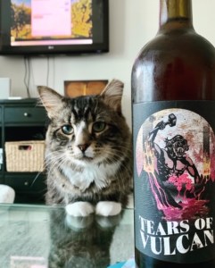 Have you ever had an orange wine you really liked? I’ll admit that I haven’t had many, but this one was a pleasure. From Day Wines out in Oregon, Tears of Vulcan is a blend of 44% Viognier, 36% Pinot Gris, and 20% Muscat made in a skin contact style. The color of the wine truly matched my orange tabby (not pictured here).