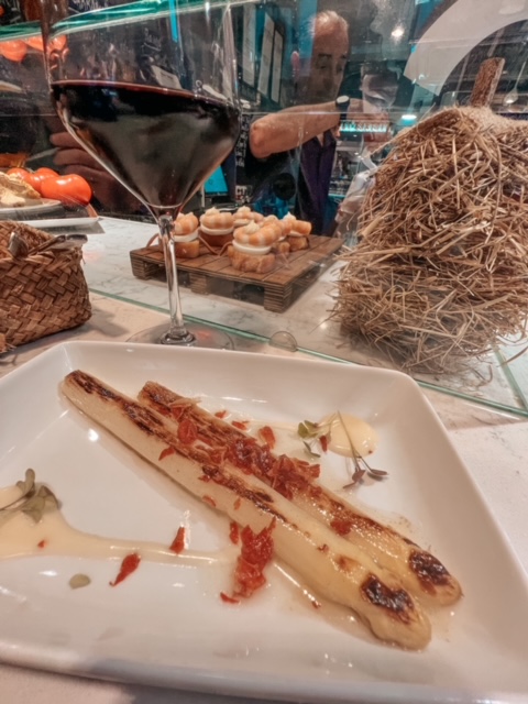 Order off the menu for freshly prepared pintxos (this is advice for everywhere). I ordered the white asparagus with ham and some kind of creamy sauce. It was worth braving the exhaustion to enjoy. Perfectly cooked asparagus and lots of Basque flavors.