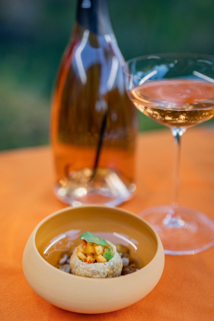 J Vineyards and Winery offers a sparkling rosé made in the traditional method in a beautiful bottle adorned with a J.